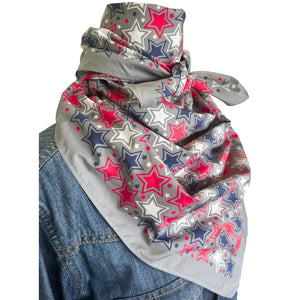 PATRIOTIC BANDANA - BRIGHT RED, WHITE & BLUE -  36" - Stars!! Red, white and blue! Bright, beautiful rich colors on soft 100% cotton. Full color on both sides!