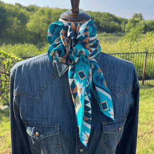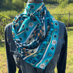 Aztec Wild Rags (Trails to Tucumcari) Turquoise Silk Scarf